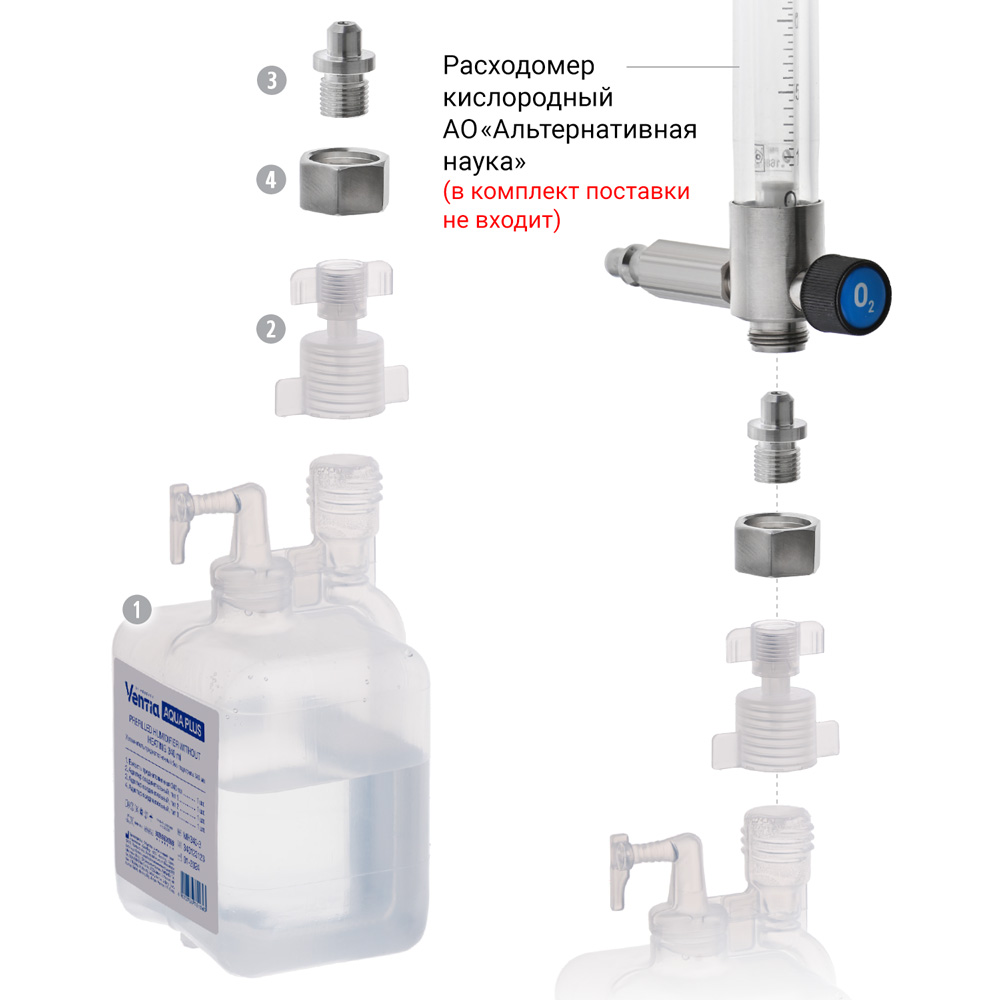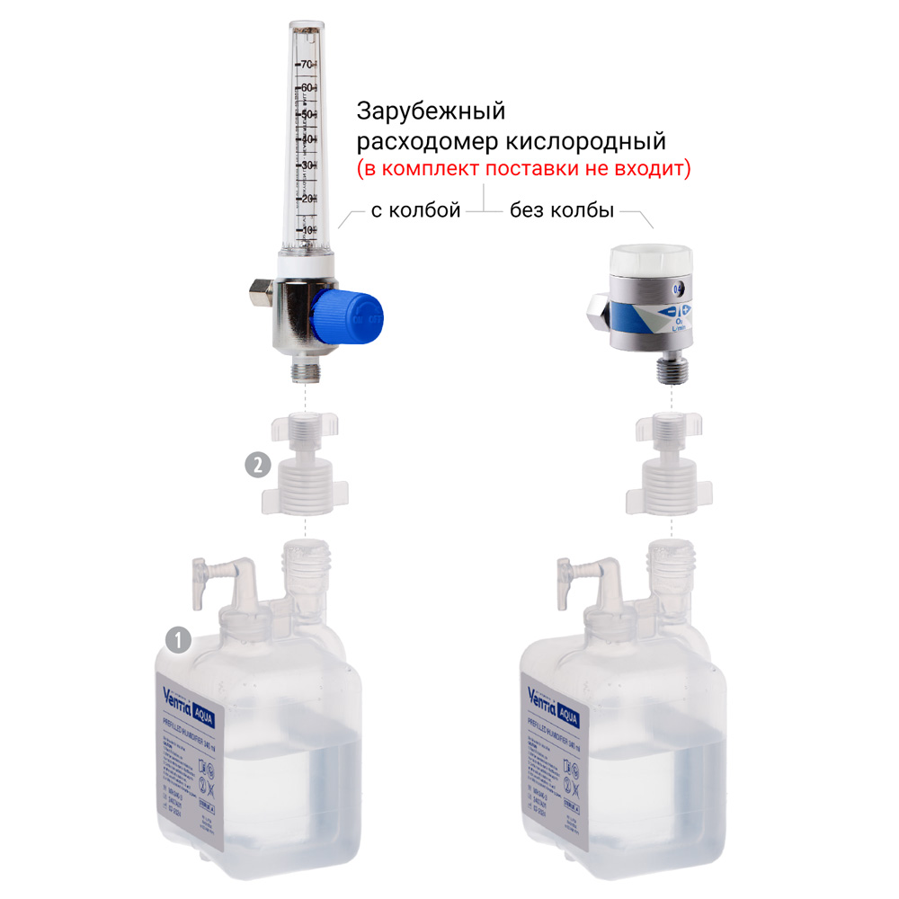 - Адаптеры 2 и 3 специально разработаны для использования с кислородными расходомерами АО «Альтернативная наука».